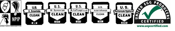 Our hatchery is NPIP Certified SE (Salmonella Enteritidis) Clean, MS/MG Clean, Avian Influenza Clean, and Pullorum Typhoid Free! These certifications represent the Gold Standard for hatchery sanitation!